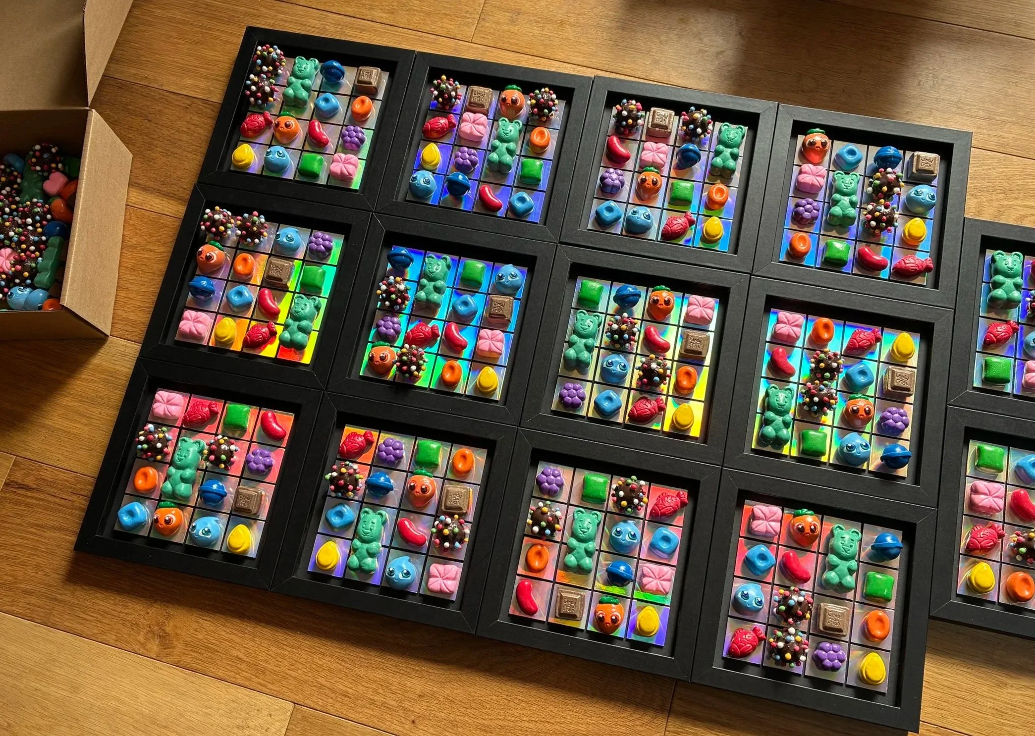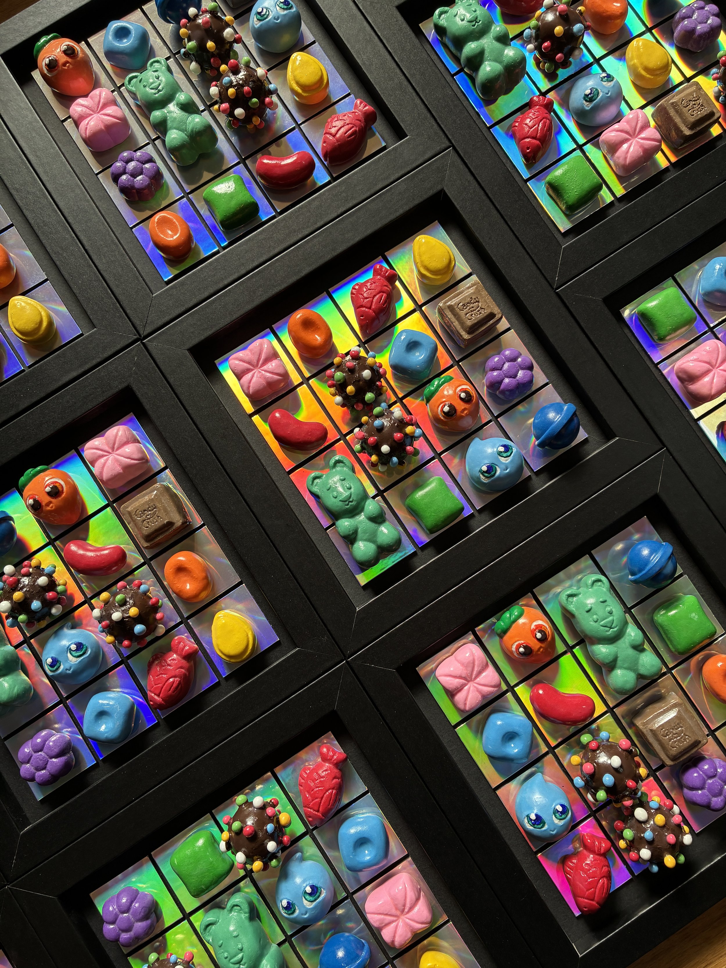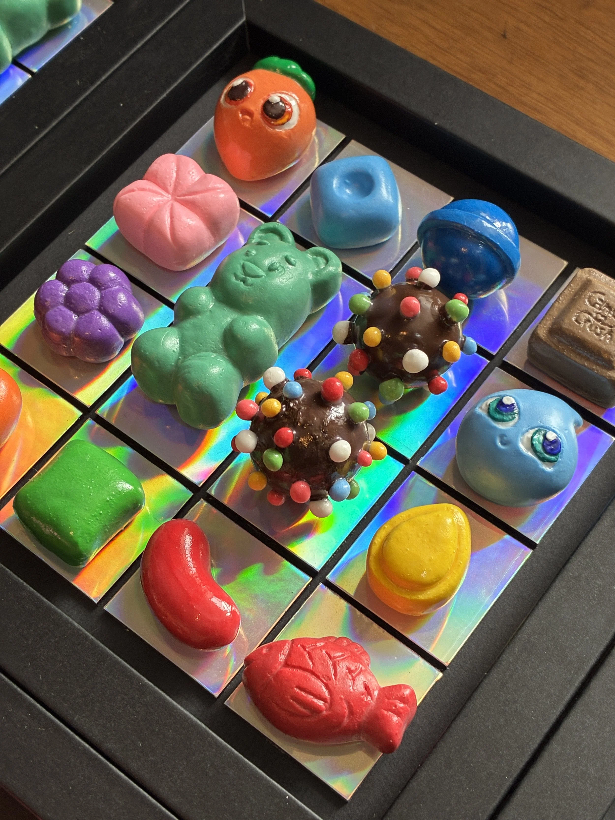 After my first foam clay gameboard I wanted to challenge myself to improve upon as many steps in the process as possible, such as learning how to make silicone moulds, and reducing time spent painting. While doing this, I also made process more complex by making the designs more detailed and giving myself a fraction of the time. The final output ended up being 24 gameboards featuring 14 individual designs, for a total of 360 game pieces.